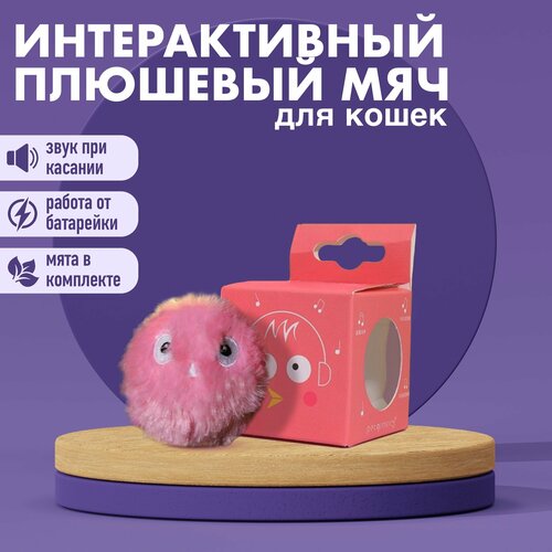 Плюшевый мячик для кошек с мятой, интерактивная игрушка со звуком Птицы Розовый