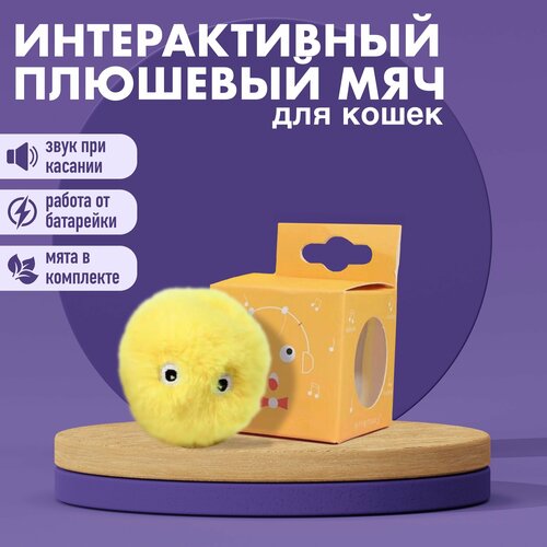 Плюшевый мячик для кошек с мятой, интерактивная игрушка со звуком Сверчка Желтый