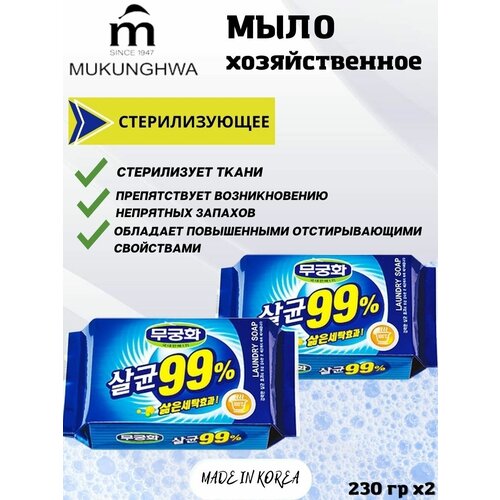 MUKUNGHWA Стерилизующее хозяйственное мыло Laundry soap с повышенными отстирывающими свойствами 230 гр*2 штуки
