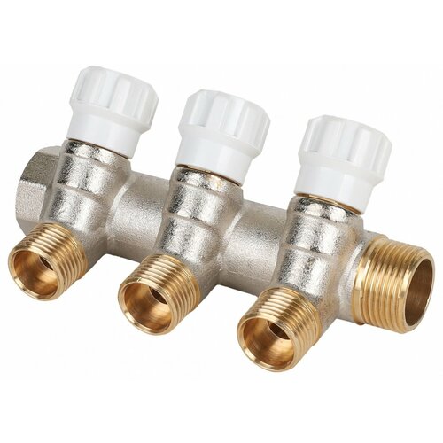 Коллектор латунный с регулирующими вентилями 3/4" x конус 1/2", 3 выхода MVI (MM.403.0504)