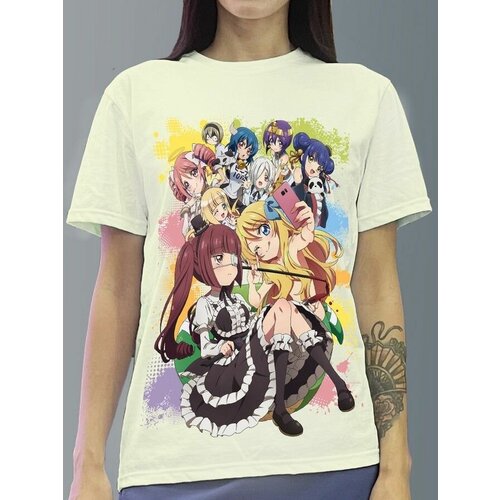 Футболка женская белая молочный оттенок из хлопка с DTF принтом аниме Dropkick On My Devil 3 - 364