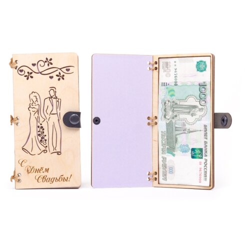 Конверт деревянный "С Днём Свадьбы!" ручная работа, светлый, пара, 16,5х8х0,9см