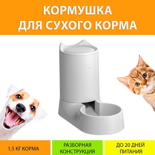 Кормушка для кошек и собак с контейнером на 1,5 кг сухого корма, принудительная подача корма, MY PETS GADGETS