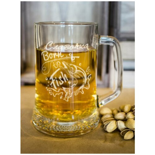 Пивная кружка "Born to Fish" Славочка бокал именной подарок мужчине любимому папе дедушке брату рыбаку