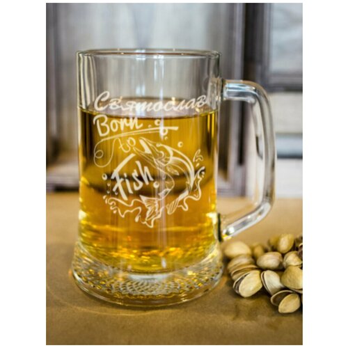 Пивная кружка "Born to Fish" Святослав бокал именной подарок мужчине любимому папе дедушке брату рыбаку