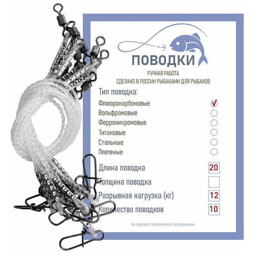Поводок плетёный флюорокарбон 20 см 10 шт нагрузка 12 кг / Поводок жерличный многожильный