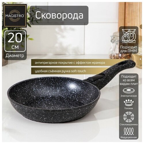 Magistro Сковорода кованая Magistro Dark, d=20 см, ручка soft-touch, индукция, антипригарное покрытие, цвет чёрный