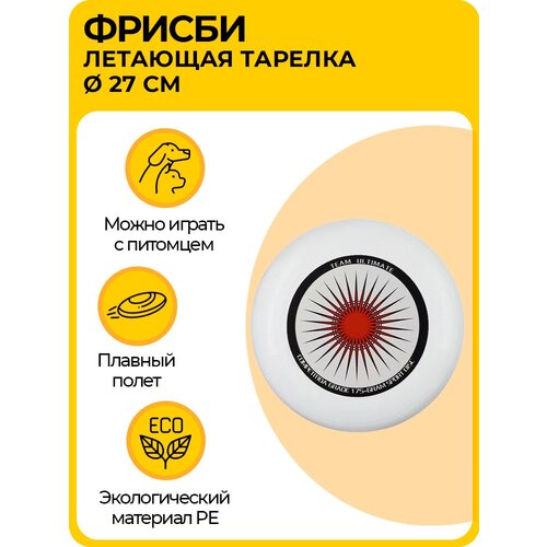Летающая тарелка (диск), Ø - 27 см, фрисби с рисунком, для игр на улице, из термопластичного полиэтилена, белая