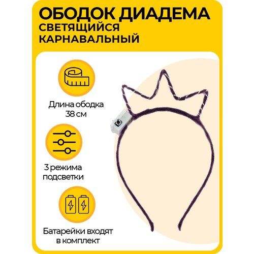 Светящийся ободок корона, карнавальная диадема с 3 режимами подсветки, для детей и взрослых, фиолетовая