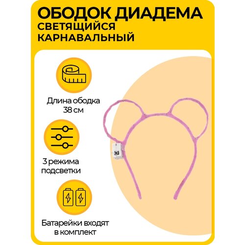 Светящийся ободок ушки мышки, карнавальная диадема с 3 режимами подсветки, для детей и взрослых, розовая
