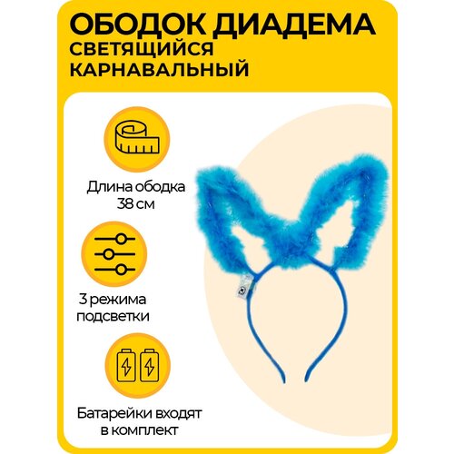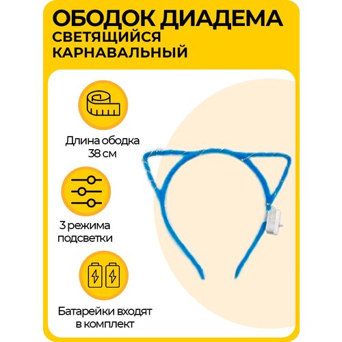 Светящийся ободок ушки кошечки, карнавальная диадема с 3 режимами подсветки, для детей и взрослых, синяя