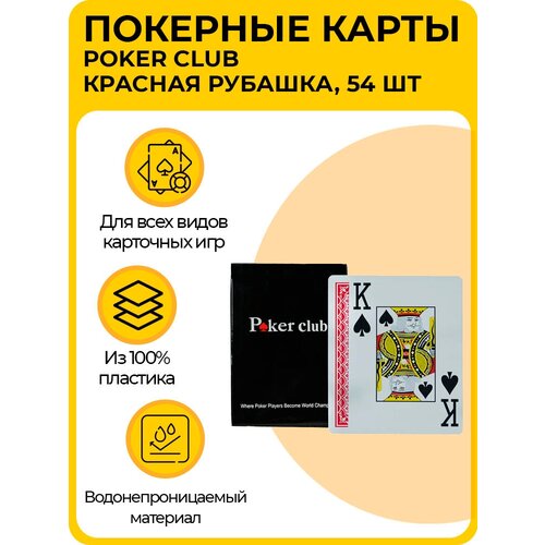 Водонепроницаемые покерные карты «Poker Club», из 100% пластика, набор карт для настольных игр, красная рубашка, 54 шт
