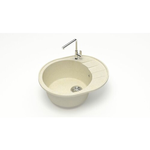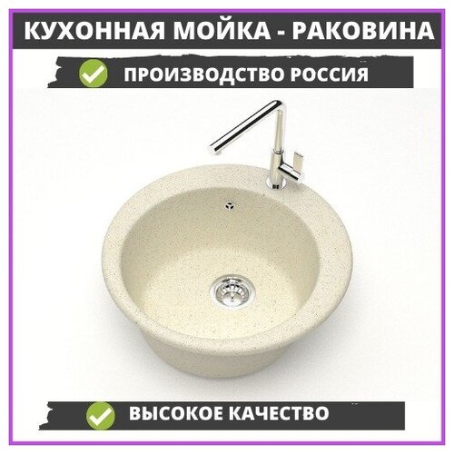Встраиваемая круглая бежевая мойка для кухни + сифон