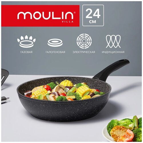 Сковорода глубокая с антипригарным покрытием Moulin Villa Mancera MNC-24-DI / сковорода антипригарная / сковородка, индукция, 24 см