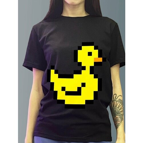 Футболка женская черная из хлопка с DTF рисунком пиксель арт - 3708