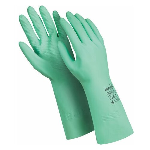 Перчатки нитриловые MANIPULA "Дизель", хлопчатобумажное напыление, размер 8 (M), зеленые