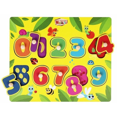 Рамка-вкладыш Mapacha "Цифры, Изучаем цифры и фрукты", деревянная, 9 элементов (962002)
