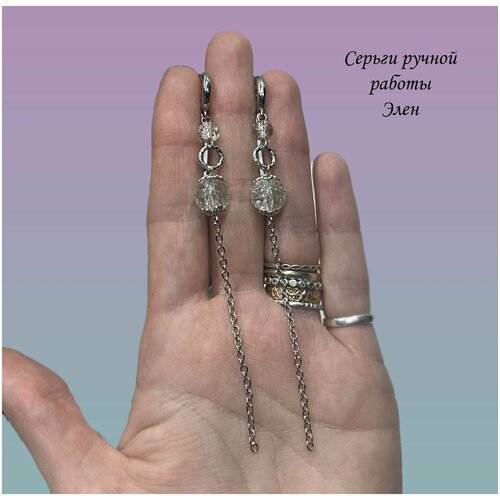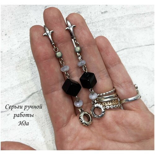Серьги с лилиями, кварцами, колечками и черными кубиками Ида