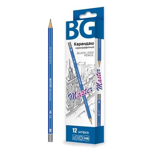 Карандаш чернографитный (простой) BG Master (HB, шестигранный, заточенный) европодвес, 12шт. (KR 4631)