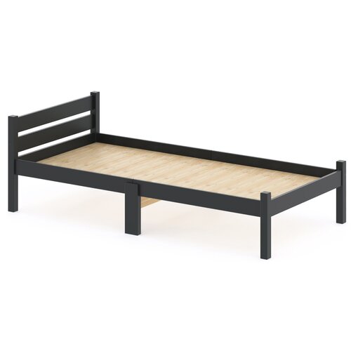 Кровать односпальная Классика Компакт сосновая со сплошным основанием, антрацит, 190х90 см