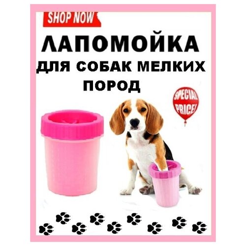 Лапомойка для собак мелких пород, переносная лапомойка, стакан-непроливайка. Розовая