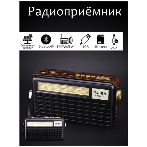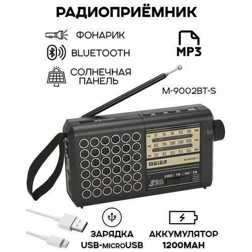 Радиоприемник Meier M-521BT-S, USB, microSD, Bluetooth, солнечная панель, USB лампа / Радио