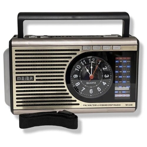 Радиоприемник Meier M-U41 USB/SD/TF/FM87-108Mhz + часы + фонарь золото