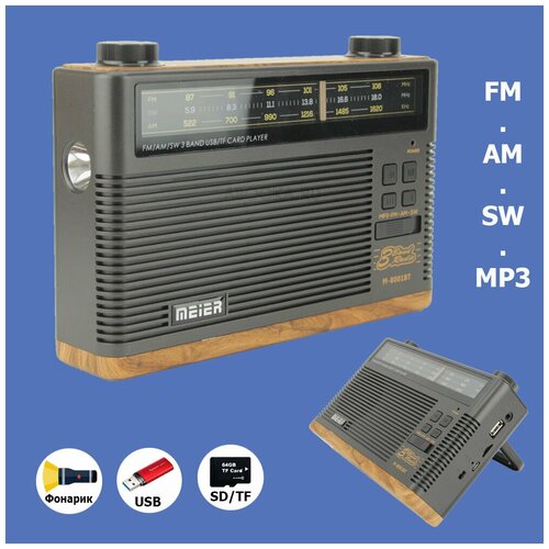 Bluetooth радиоприемник в стиле "Ретро" со сменным аккумулятором Meier M-1913BT Black