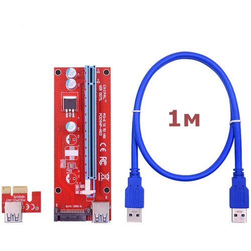 Райзер для видеокарты 007S, SATA, USB 3.0 - 1 м, 15pin PCI-E 1X - 16X