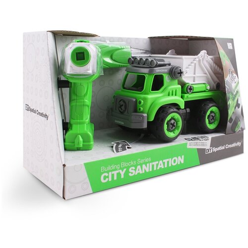 Lei Meng Игровой набор Грузовик для мусора (21 см, шуруповёрт-двигат, отвёртка, звук)