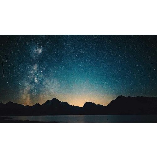 Постер на экокоже 60x110 LinxOne "Light meteor night lake" интерьер для дома / декор на стену / дизайн