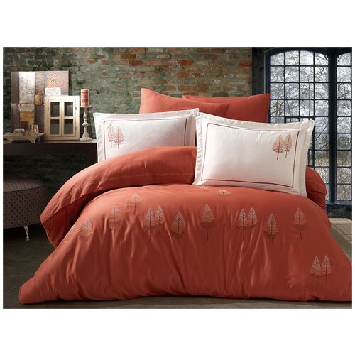 Постельное белье из сатина с вышивкой 11060 Pamir терракотовый Dantela Vita (терракотовый), Евро (наволочки 50x70)
