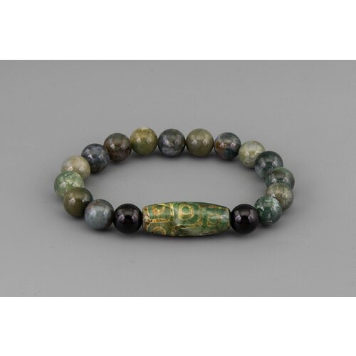 Браслет агат моховый, агат черный (оникс), агат Дзи "9 глаз" 17 см. Коллекция "Minera Dzi Stones". №01853