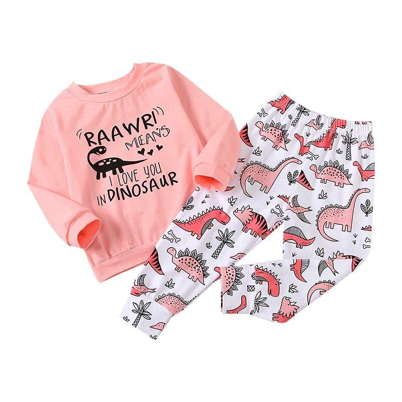 Ребенок Динозавр Печать Длинный рукав Две части Розовый 120см