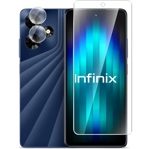 Защитное стекло для Infinix HOT 30 (Инфиникс ХОТ 30) на Экран и Камеру, (гибридное: пленка+стекловолокно), прозрачное тонкое Hybrid Glass, Miuko