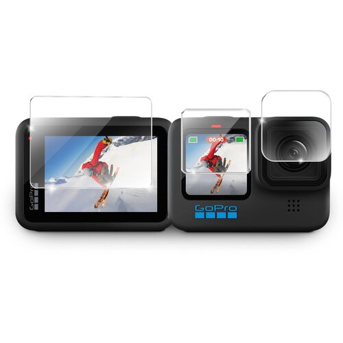 Защитное стекло для GoPro Hero 10/11 (ГоуПро Хиро 10/11) Комплект, (гибридное: пленка+стекловолокно), прозрачное тонкое Hybrid Glass, Miuko