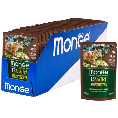 Влажный корм для кошек Monge BWILD Feed the Instinct, с буйволом, с овощами 5 шт. х 85 г (кусочки в соусе)