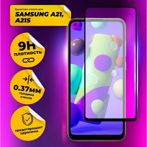 Защитное стекло для Samsung Galaxy A21 / Galaxy A21S / Закаленное стекло, 9D, полный клей, черная рамка