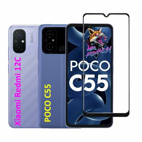 Защитное стекло на Xiaomi Redmi 12C / POCO C55 ( Ксяоми Редми 12С / поко С55 ) Полноэкранное Закаленное стекло с олеофобным покрытием Full Glue