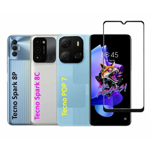 Защитное стекло на Tecno POP 7 / Spark 8C / Spark 8P ( Техно ПОП 7 / Спарк 8С / Спарк 8П ) Полноэкранное закаленное стекло с рамкой Base Glass