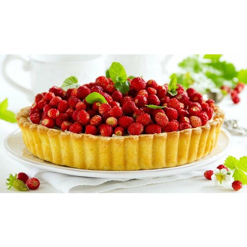 Картина на холсте 50x80 LinxOne "Десерт еда berries cake food" интерьер для дома / декор на стену / дизайн