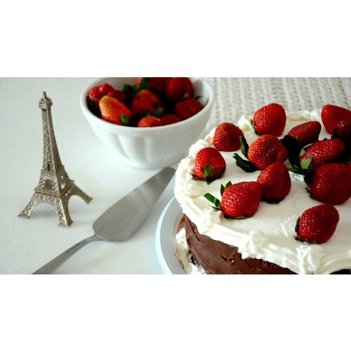Картина на холсте 60x80 LinxOne "Strawberry cake berries" интерьер для дома / декор на стену / дизайн