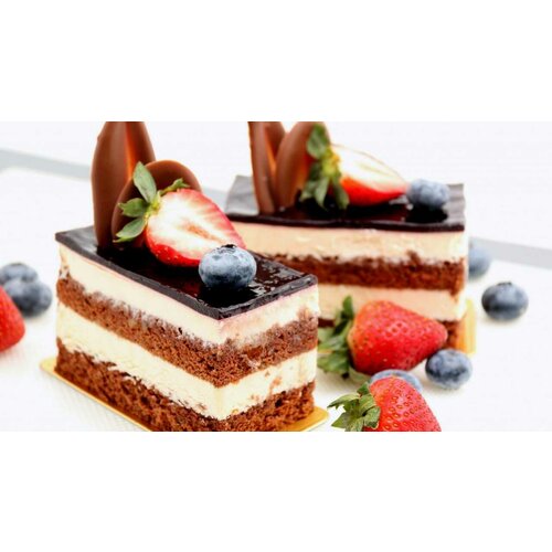 Постер на экокоже 60x90 LinxOne "Выпечка cake ягоды" интерьер для дома / декор на стену / дизайн