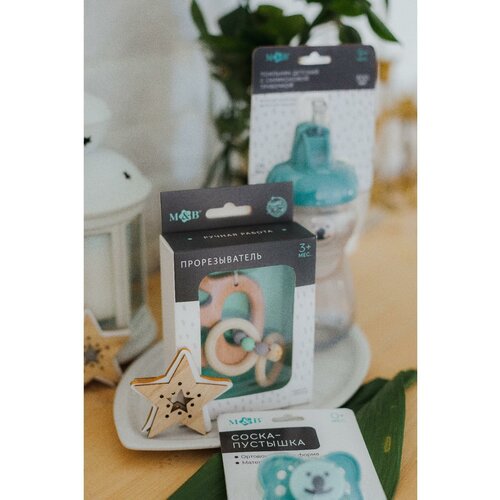 Прорезыватель деревянный для зубов Gentle style, с силиконовыми элементами