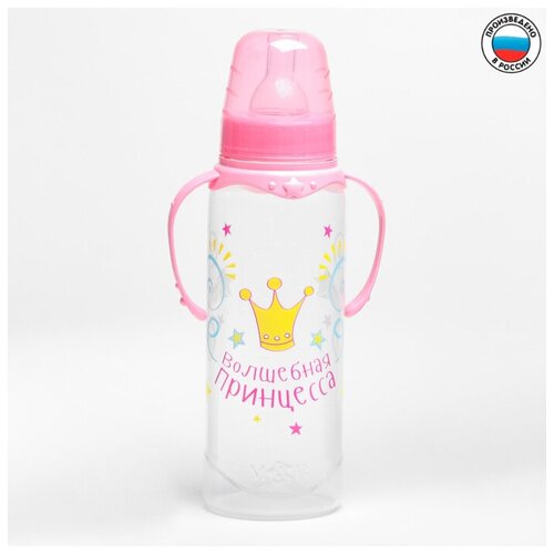 Бутылочка для кормления «Принцесса» 250 мл, классическая с ручками, цвет розовый