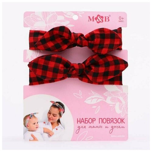 Набор повязок на голову для мамы и дочки Клеточка, 2 шт.