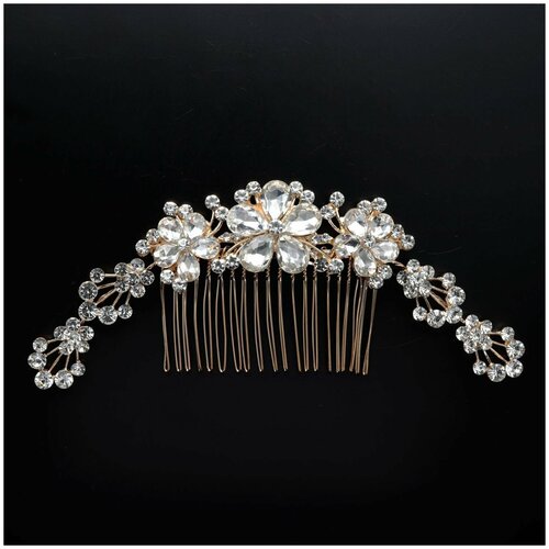 Заколка для волос - Корона Гребень, со стразами, золотистая, 1 шт