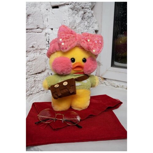 Уточка в очках, мягкая игрушка в подарочном красном мешочке (желтая)