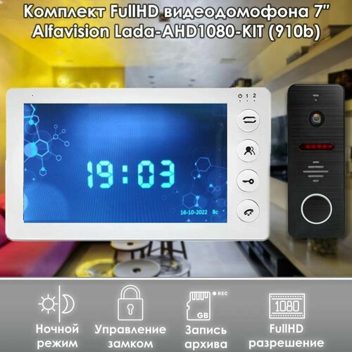 Комплект видеодомофона Lada AHD1080P-KIT (910bl) Full HD 7 дюймов / в квартиру / в подъезд / для частного дома