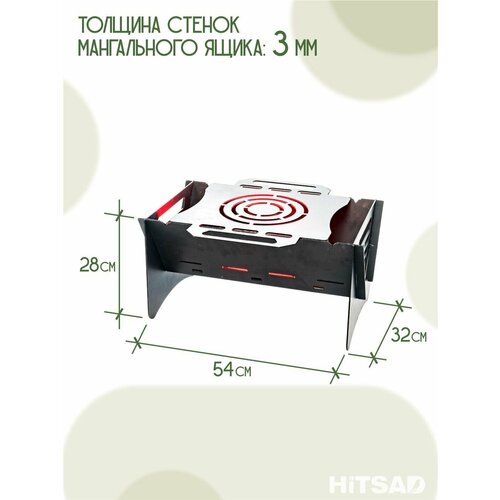 Мангал разборный 102-013 сталь 3 мм, зона барбекю, гриль для дома и дачи 540 x 320 x 280 мм хитсад
